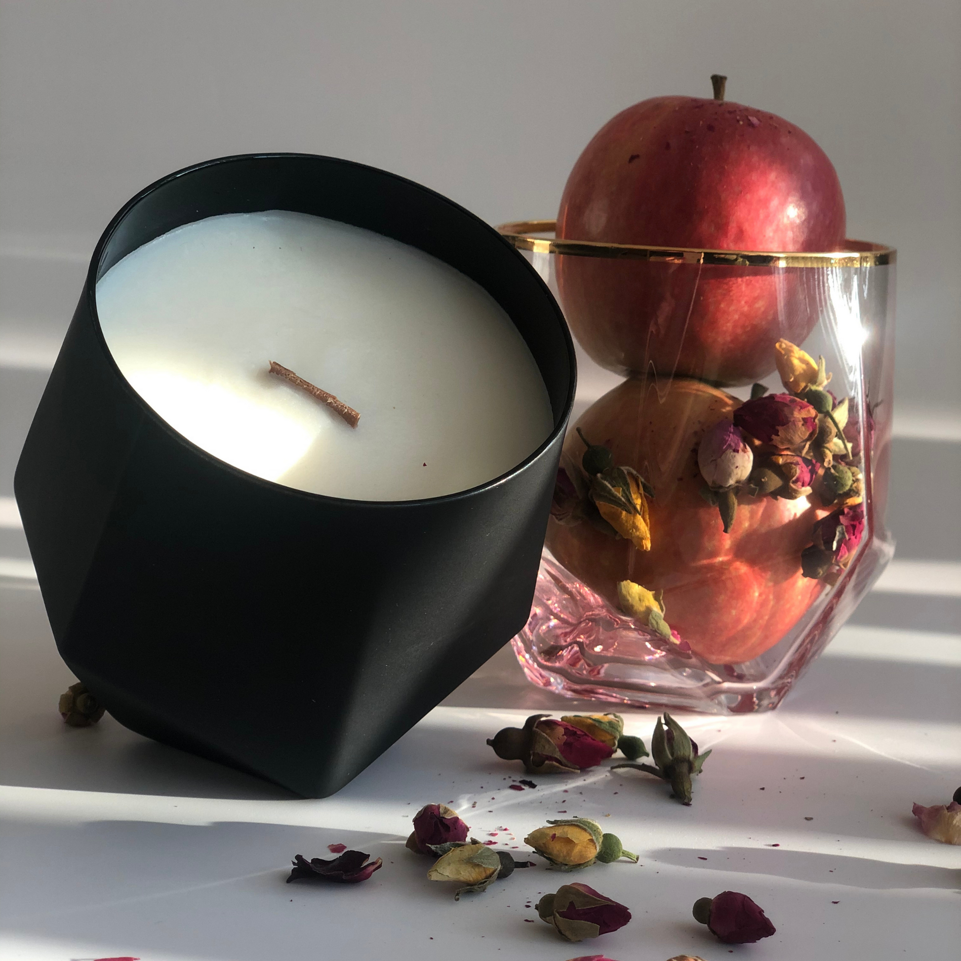 Peonies in bloom with the bite of Red Apples and the opulence of Jasmine, Rose and gillyflower, mingling with the sensuality of soft blush suede. Luxurious and seductive.