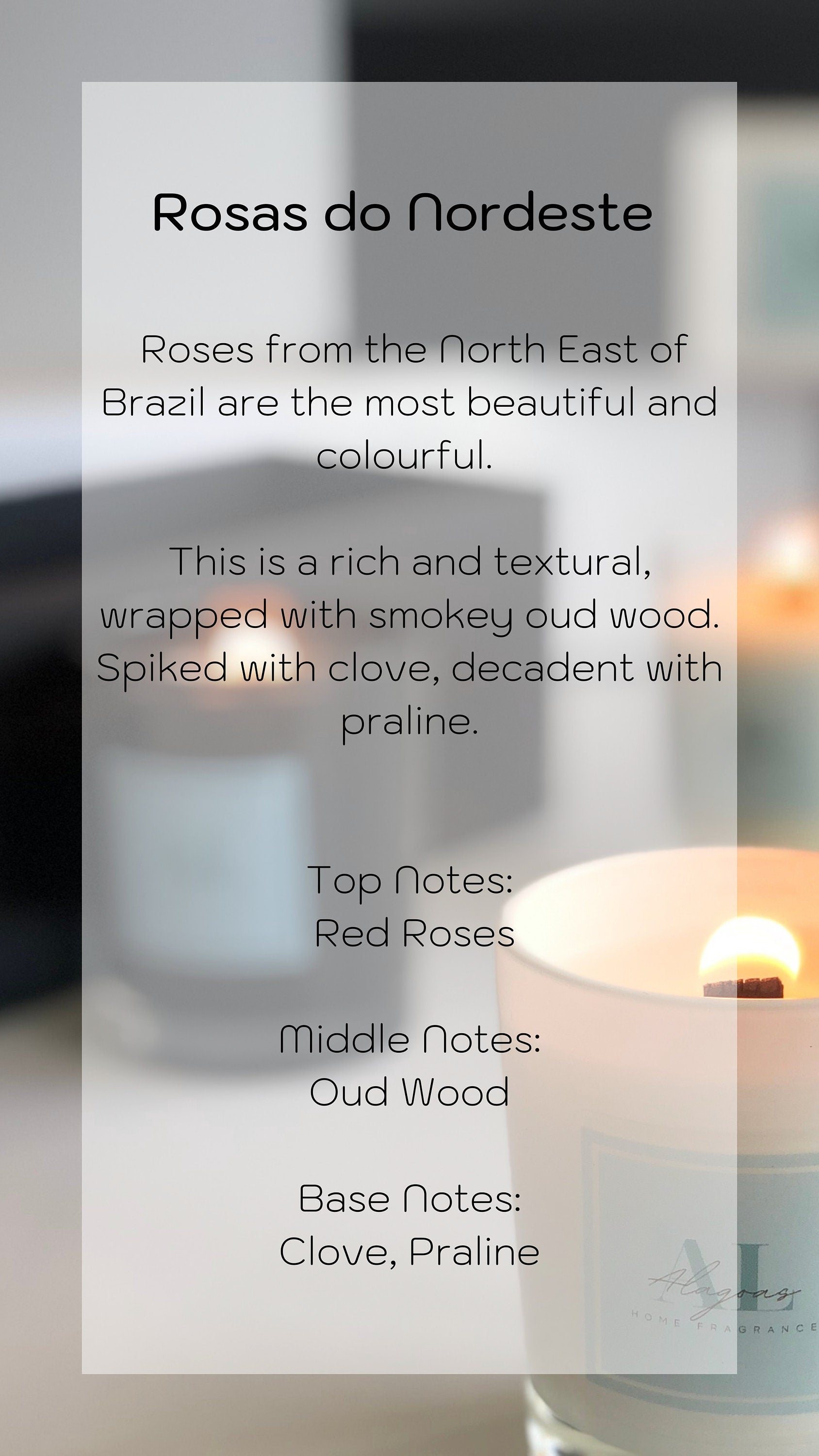 This is a rich and textural rose fragrance wrapped with smoky oud wood. Spiked with clove, decadent with praline.
